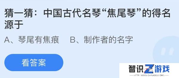支付宝蚂蚁庄支付宝蚂蚁庄园小课堂4月16日的其中一个问题是:猜一猜:中国古代名琴“焦尾琴”的得名源于?这道题考查了关于焦尾琴的知识,下面一起来看一下蚂蚁庄园4月16日的正确答案吧。