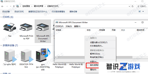 二、取消“脱机使用打印机”设置Windows 可能会自动启用“脱机使用打印机”模式,导致打印机无法正常工作。可以按照以下方法检查并关闭该选项: