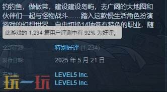 仅在 Steam 上,该游戏就已经收到超过 1,000 条用户评论,评价非常积极,其中 92% 的评价普遍值得称赞。