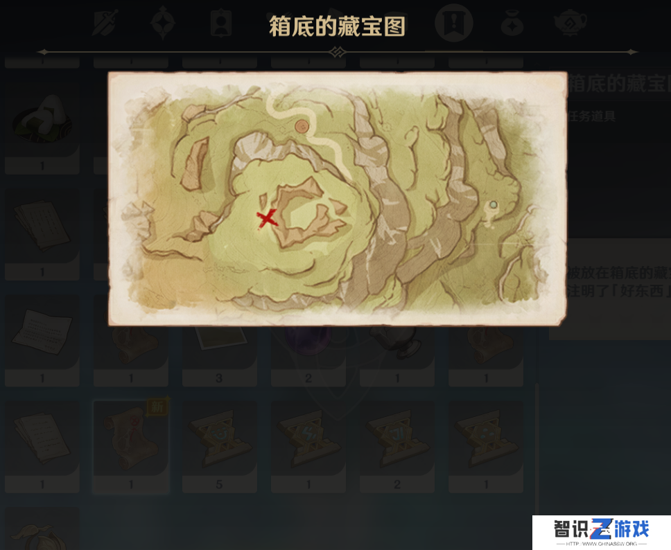这次开出来的就不是空的了,正常金宝箱有30原石,开完后宝箱消失,箱底出现一张纸条,纸条上有最后一个宝箱的线索 。